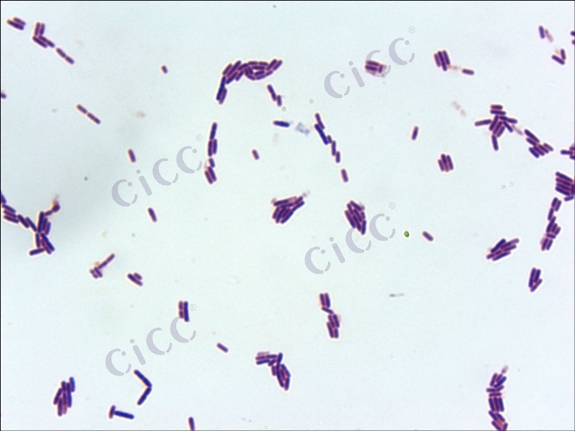 特征特性:G+,菌体杆状,单个排列,运动。菌落近圆形,表面光滑,中央隆凸,边缘整齐,灰白色。液体培养中度混浊。明胶液化。发酵葡萄糖、果糖、蔗糖和麦芽糖,不发酵阿拉伯糖。V.P 阳性,M.R. 阳性,H2S弱阳性,脲酶阴性,接触酶阳性,1,耐7%NaCl。最适温度28~32℃,最高温度50℃。石蕊牛奶反应产碱,胨化,还原。利用硝酸盐。