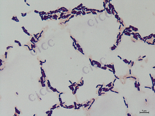 特征特性:G+,菌体杆状,运动。菌落圆形、波浪形,表面光滑,边缘整齐,灰白色,不透明。液体培养中度混浊。明胶液化。发酵葡萄糖、果糖、蔗糖、麦芽糖和甘油,不发酵阿拉伯糖。V.P 阳性,M.R. 阳性,H2S阳性,接触酶阳性,1,耐7%NaCl。最适温度28~32℃,最高温度45℃。石蕊牛奶反应胨化,还原。利用硝酸盐。