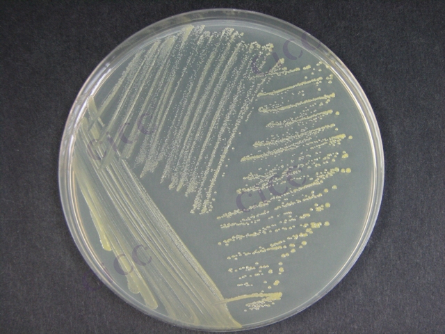 特征特性:G+,菌体短杆至棒状,单个、成对或“V”字型排列。菌落圆形,表面光滑,扁平,边缘整齐,柠檬黄色,有光泽,不透明。液体培养中度混浊。不液化明胶。发酵葡萄糖、果糖、蔗糖和麦芽糖。V.P 阴性,M.R.阳性,H2S阳性,脲酶阳性,接触酶阳性,1及兼性厌氧。最适生长温度25-37℃,最高生长温度40-41℃,利用硝酸盐。