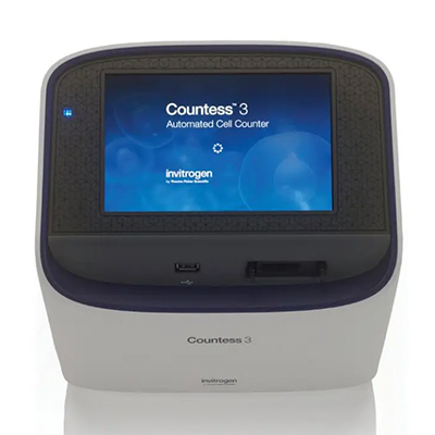 Countess 3 自动细胞计数器是一种台式细胞计数系统,配备先进的机器学习算法、坚固耐用的光学器件、全自动聚焦和照明以及图像分析软件,可快速评估原始和无限增殖化细胞样品。