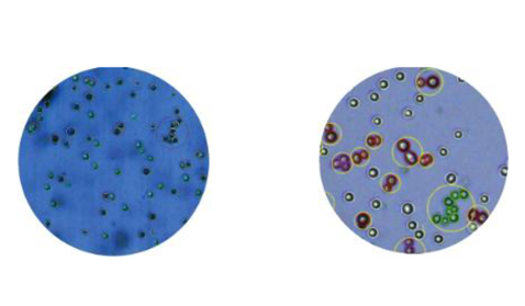 Countstar细胞计数仪可以通过台盼蓝染色检测活细胞浓度、死细胞浓度和细胞存活率,B16细胞计数,绿色圈计数为活细胞,黄色圈计数为死细胞。